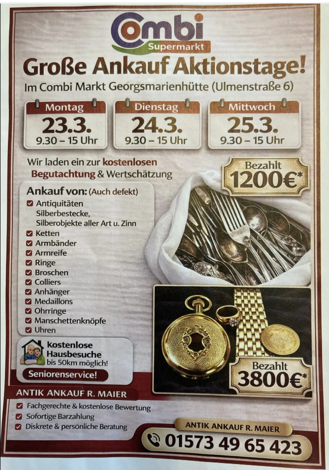 Die Verwirrung um die „Gold-Ankaufstage“ im Combi Markt Georgsmarienhütte entpuppt sich als höchst dubioser Fall von Markenmissbrauch.