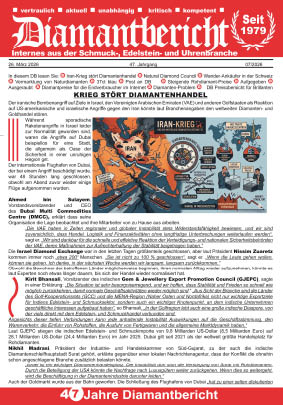 +++ Iran-Krieg stört Diamantenhandel +++ Natural Diamond Council +++ Wander-Ankäufer in der Schweiz +++ Vermarktung von Naturdiamanten +++ 37ct blau +++ Post an DB +++ Steigende Rohdiamant-Preise +++ Aufgegeben +++ Ausgeraubt +++ Diamantpreise für die Endverbraucher im Internet +++ Diamanten-Problem +++ DB Preisübersicht für Brillanten +++