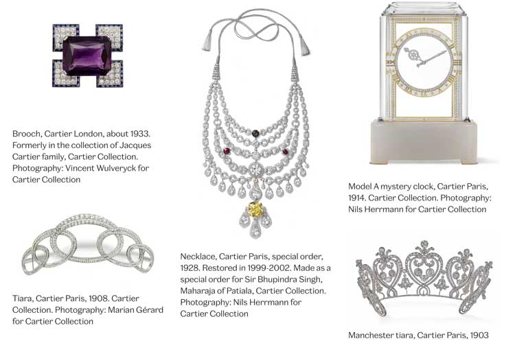 Mit über 350 Exponaten wird die Entwicklung in künstlerischer, gestalterischer und handwerklicher Hinsicht nachgezeichnet und nachvollziehbar. Die Tour startet um die Jahrhundertwende, als die drei Enkel des Gründers – Louis-François – damit begannen, Cartier in Paris (Louis), New York (Pierre) und London (Jacques) zu etablieren. Sie taten es mit Ehrgeiz, Geschick, Ideenreichtum, Savoir-faire und Courage. Den dreien verdankt die Maison den Zusatz: "Juwelier der Könige und König der Juweliere."