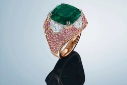 Der Ring mit einem 9,20 Karat schweren kolumbianischen Smaragd im Cushion-Schliff, der von runden rosa und blauen Diamanten sowie runden weißen Diamanten umgeben ist, erzielte 125.000 $ (116.822 €) pro Karat. Der Schätzwert für das Stück lag zwischen $930.000 und $1,3 Millionen.